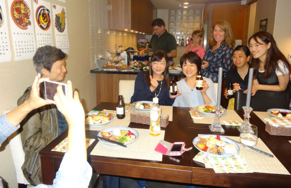 2017年カレン先生宅で持ち寄りパーティ(水曜夜クラス)。家族で歓迎して下さる